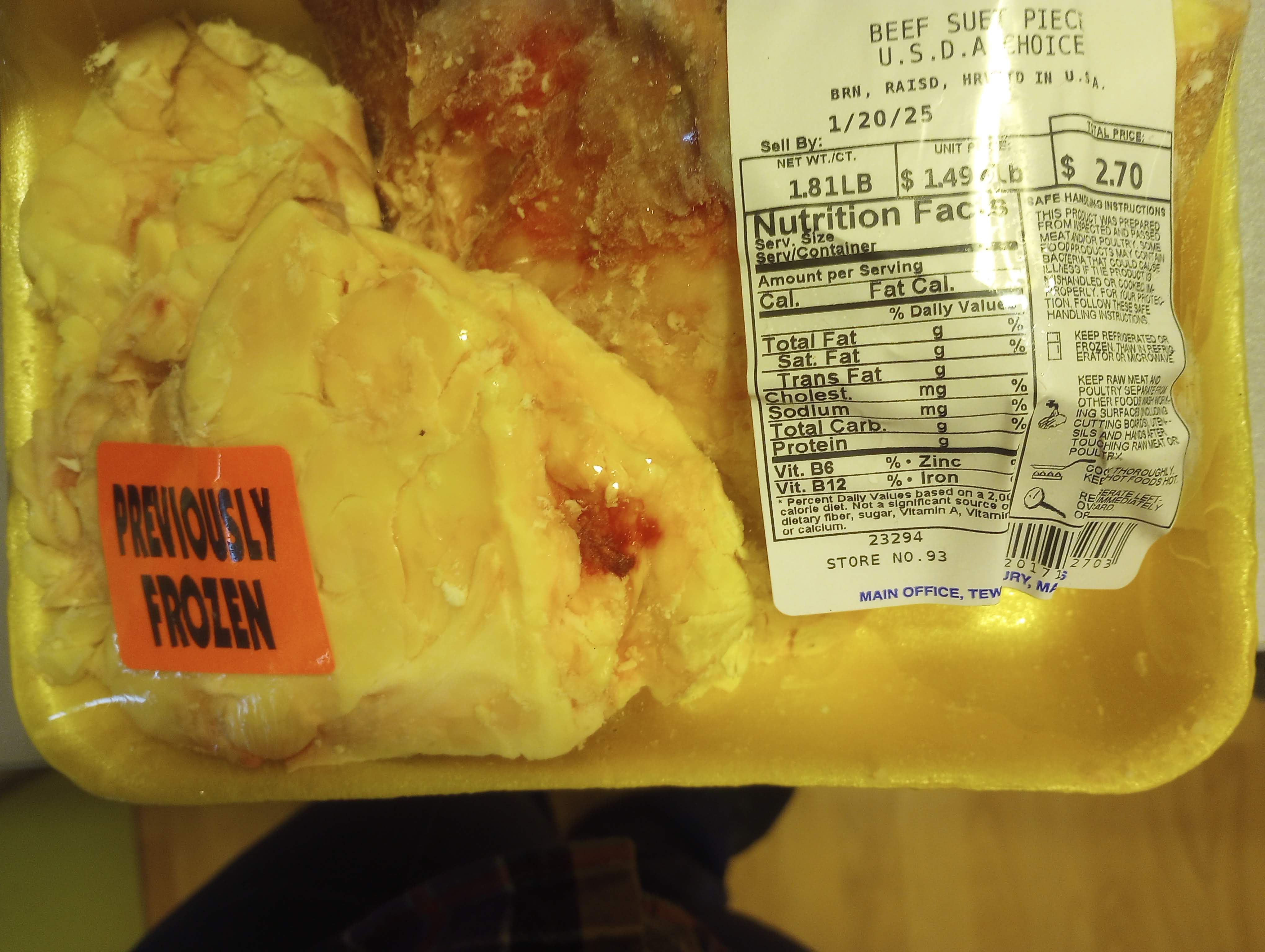 My favorite local grocery store sells beef suet in the meat section, so I picked up a package of it. The suet needs to be rendered to remove the proteins- bits of meat an connective tissue- as these spoil quickly. Do not feed your flock spoiled food. Just don’t. I scoured the interwebs for the best way to melt the fat and separate it from the other bits. Food.com, which has some really amazing people food recipes, also had these bird food recipes. Those recipes also offer an unexpected method of suet rendering: use the microwave.