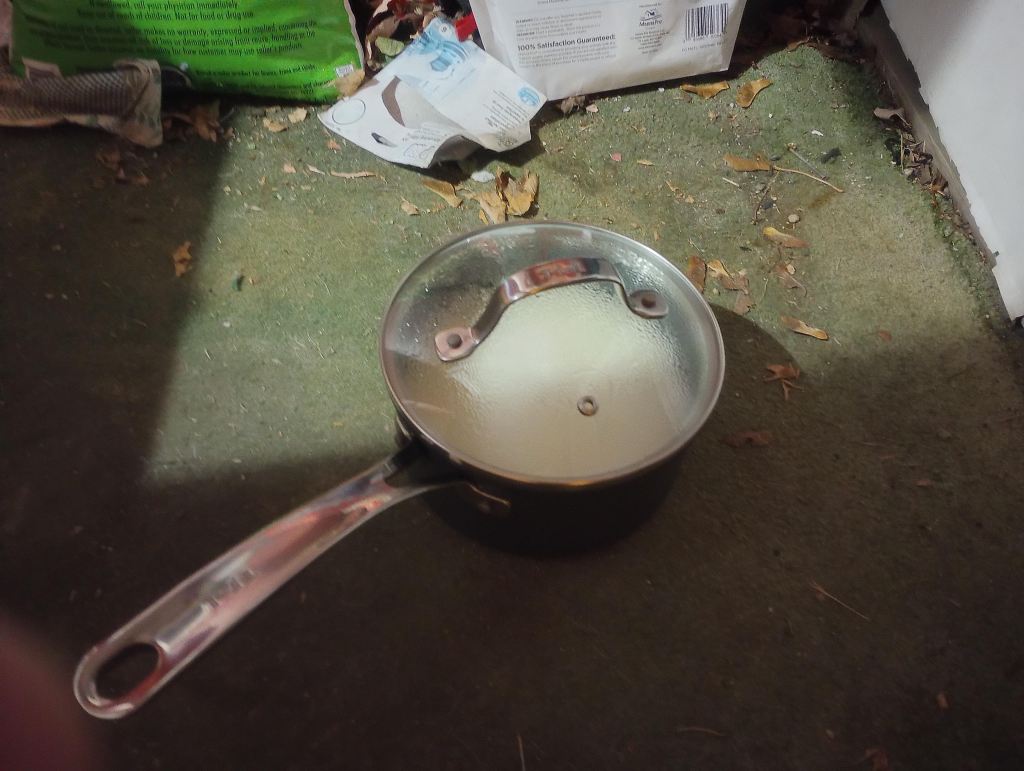 It was then time for a cool down. As noted, it is quite cold here in the northeastern USofA, so the entire outdoors is our refrigerator. Yes, we left the hot pan in the entryway of the kitchen overnight. I did move it to the refrigerator the next morning, as the entryway does warm up in the sun.