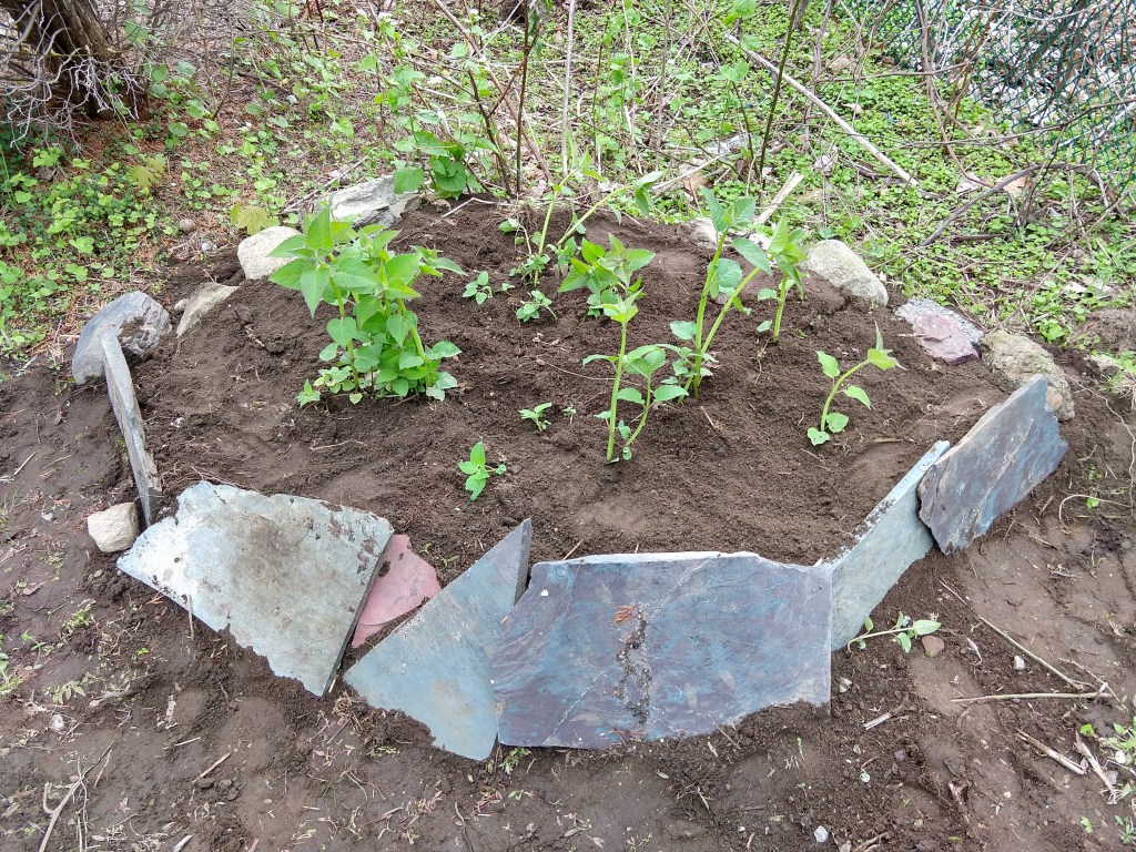 Rocks and sticks have a zillion uses or more. Need to weight something down or prop something up? Rocks are the perfect choice. Sticks can become a trellis for vines to climb. Both sticks and rocks can define the border of a planted bed. The are very easy to find and zero cost. You can even make a game out of gathering rocks or sticks and get some younger folk involved.