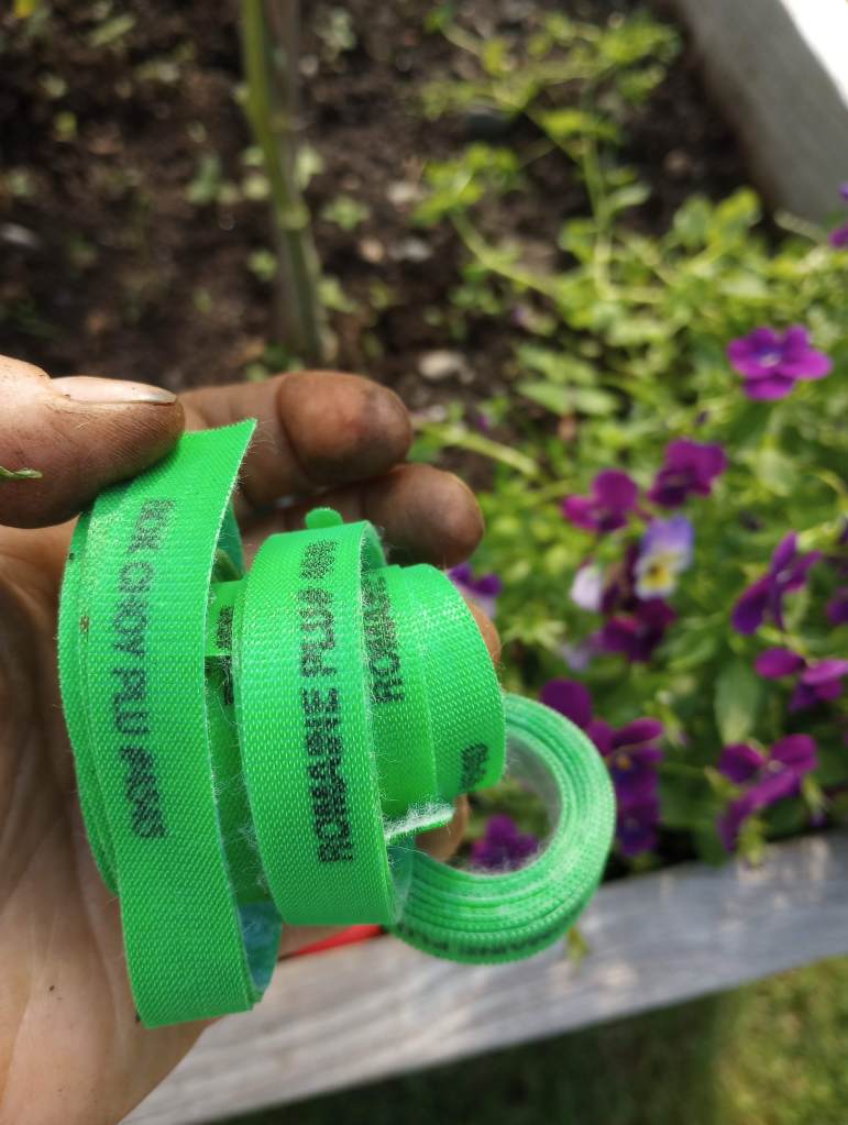 Re-purposing items that would otherwise go to waste is a long standing tradition in home food production. My favorite plant ties come free with heads of lettuce from the grocery store. I save them during the winter when I have to buy salad veggies. They are easy to cut to the needed length to keep my tomatoes upright on their sticks.