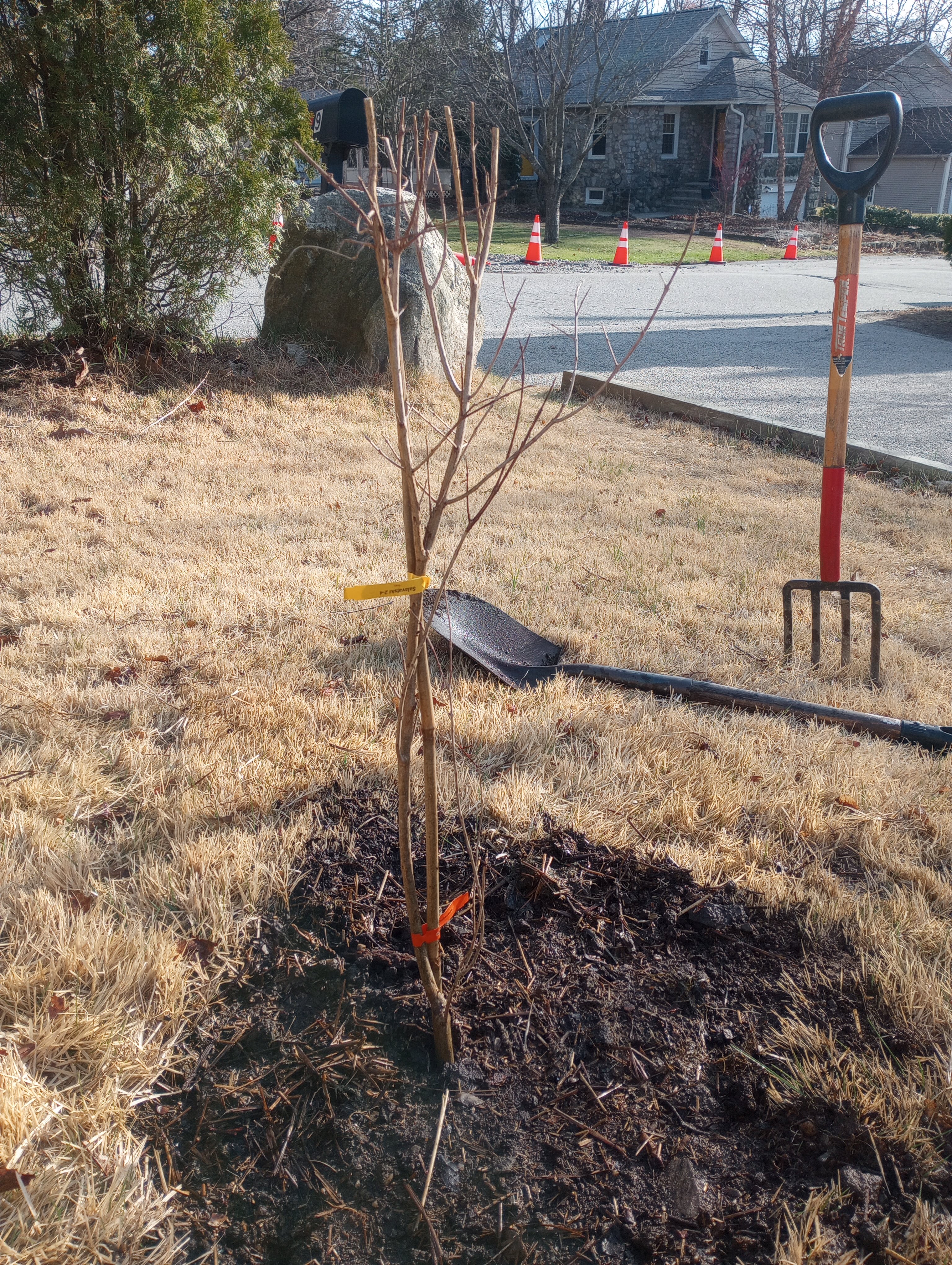 Just when we thought the New England weather couldn’t New England any harder, it did. We had some delightfully warm days. We had some much-needed rainy days. We had some frosty nights, but nothing too harsh or unexpected. The spring peepers started chirping. My daffodils started to pop up. On April 4th, that pomegranate tree I ordered in January arrived and I planted it. Check this out-