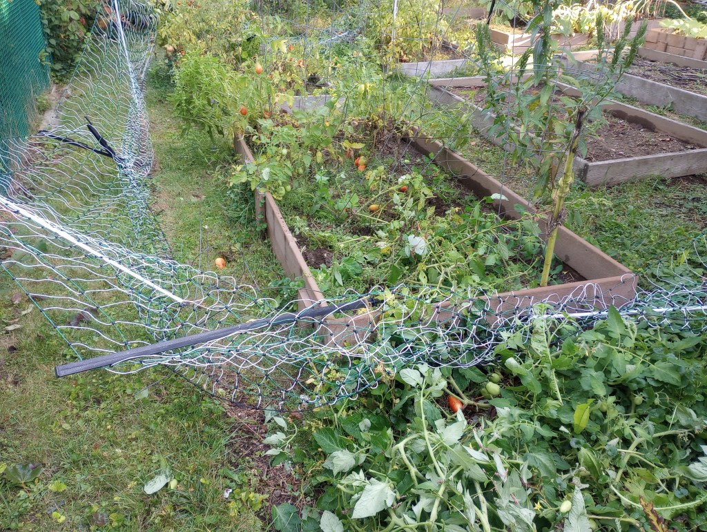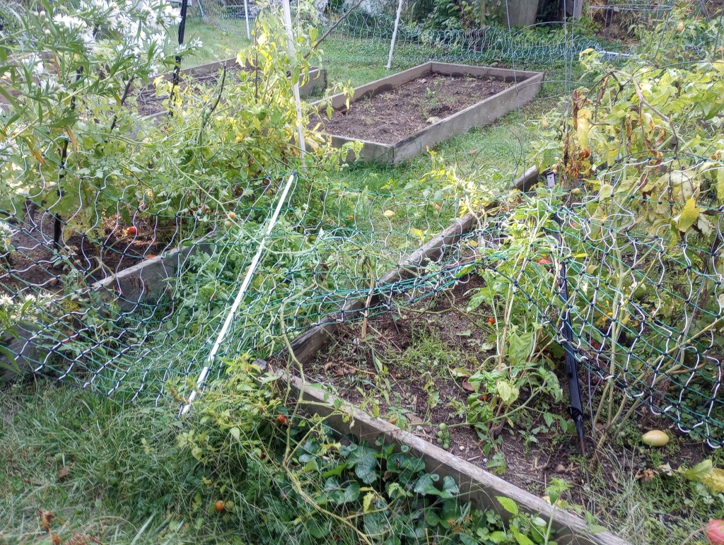 Speaking of resilient and wild things- we had a bit of an issue with some kind of creature which gave no fluffs about our electrified fencing. We think it was deer- one or many, we can not tell. There were hoof-prints in the soil, the fencing was tangled, and some tomatoes were chomped. Besides, a bear would have skipped the veggies and raided the chicken coop.