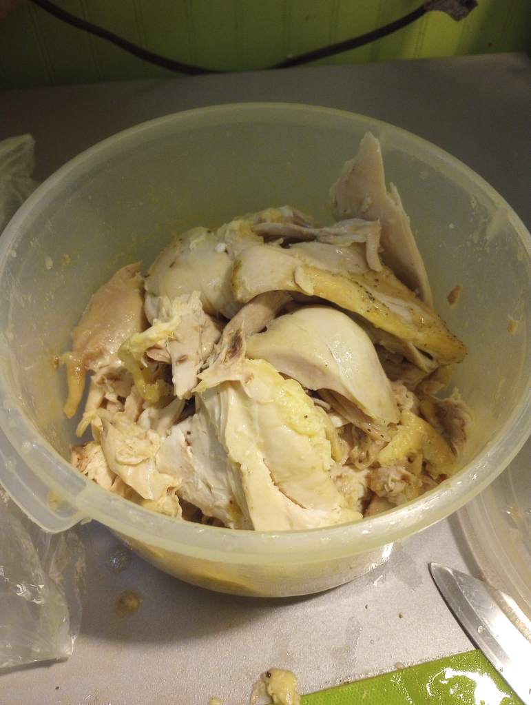This past weekend it snowed- not just in Massachusetts, but in a huge chunk of the USA- so I made another favorite soup- chicken soup with dumplings. First, I made some stock.