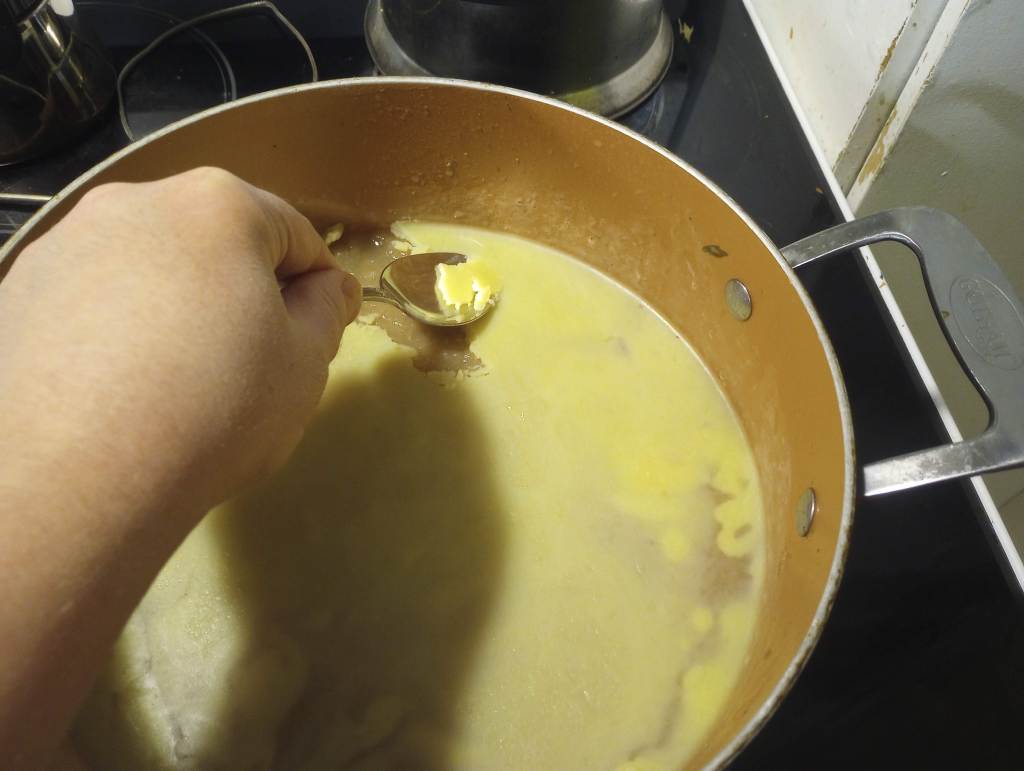 While the soup was heating up, I made the dumplings. Mr. Food It Yourself and I like Alton Brown’s recipe. The recipe in the link includes an alternate method for making the broth. If you are short on time but have a pressure cooker it does make a good broth. The choux pastry method for dumplings looks a little intimidating on paper, but in practice it is straightforward. I could not take too many pictures of the dumpling production, as most steps involved a lot of movement and/or the use of both hands.