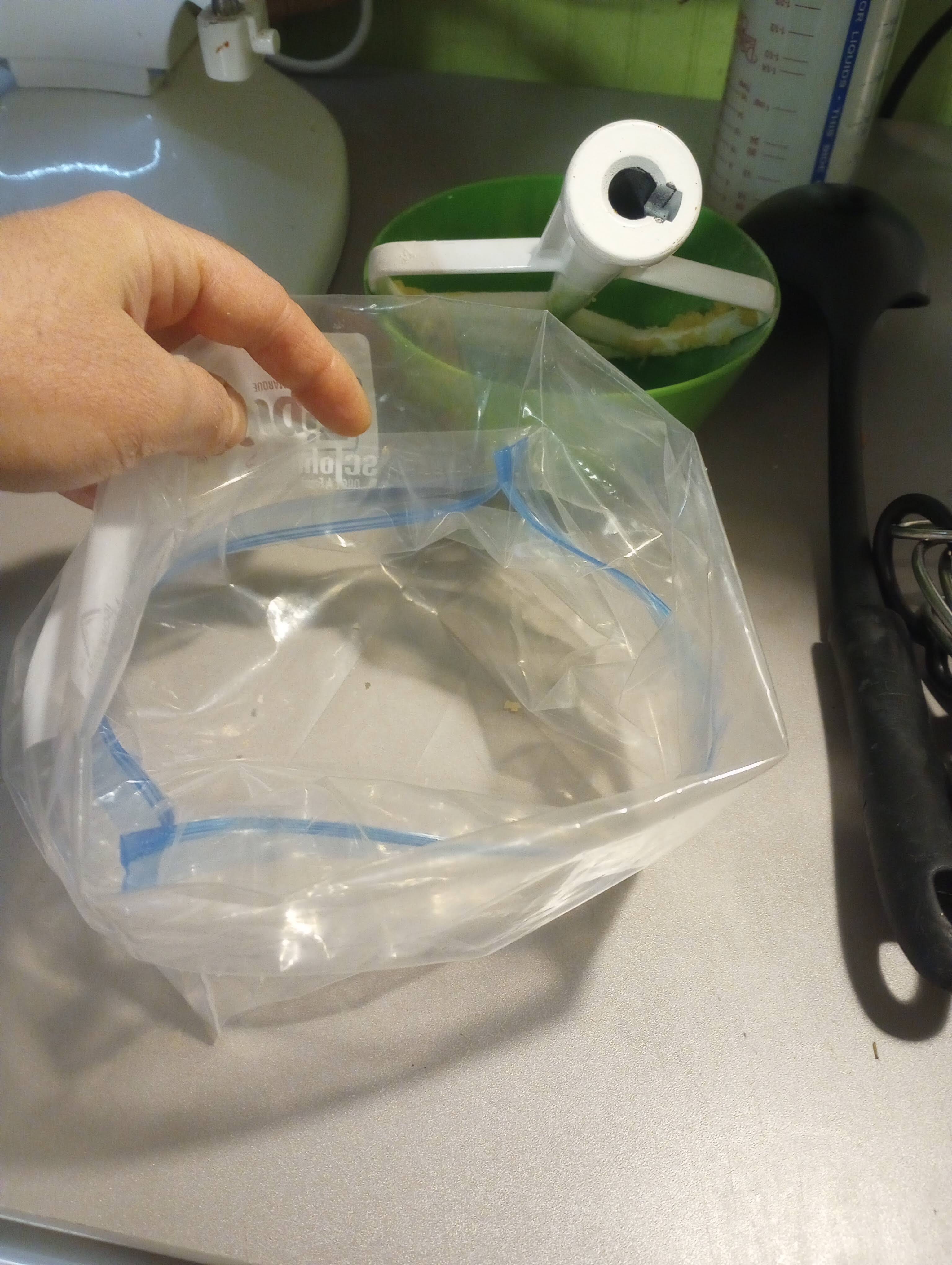 Another tip- fold the top of the zipper bag down when you load in the dough. You will get less dough on the outside of the bag.