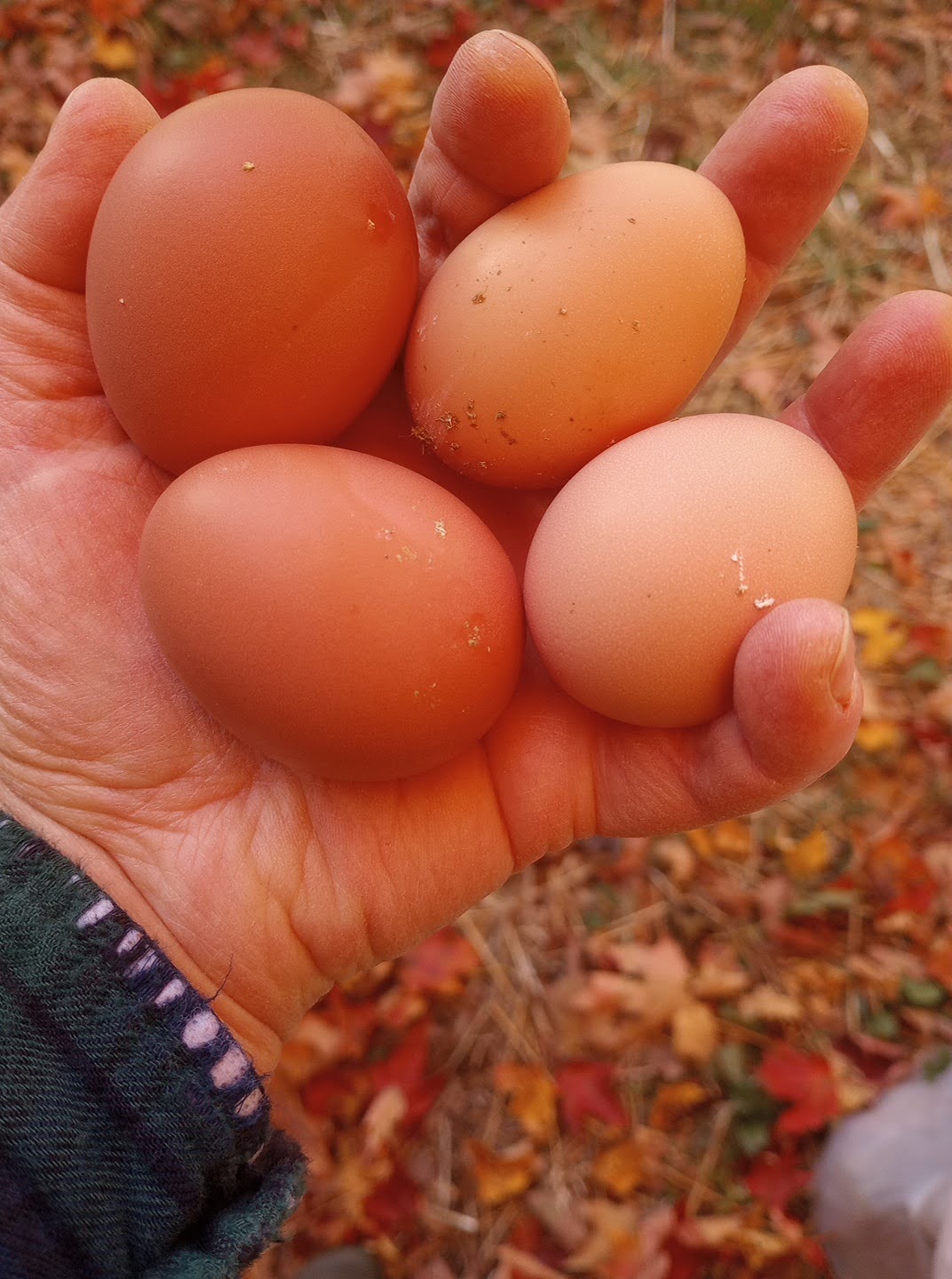 The new hens have started laying, and we are very excited. I had to resort to (GASP!) buying eggs in the past few months, but now we once again have an adequate supply of eggs from our own backyard birds. We also are feeling very accomplished at having repaired the door to the chicken run, which was not in good condition. Carpenter bees had nested in the frame and last year’s ice and snow took its toll on the structural integrity of the door. My Amazing Dad helped us build and install a new door frame and door on the run. We are confidant the girls will be safely contained this winter.